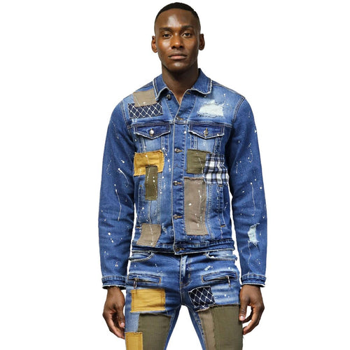 Multi Colored Twill Patch Denim Jacket - KLEEP
